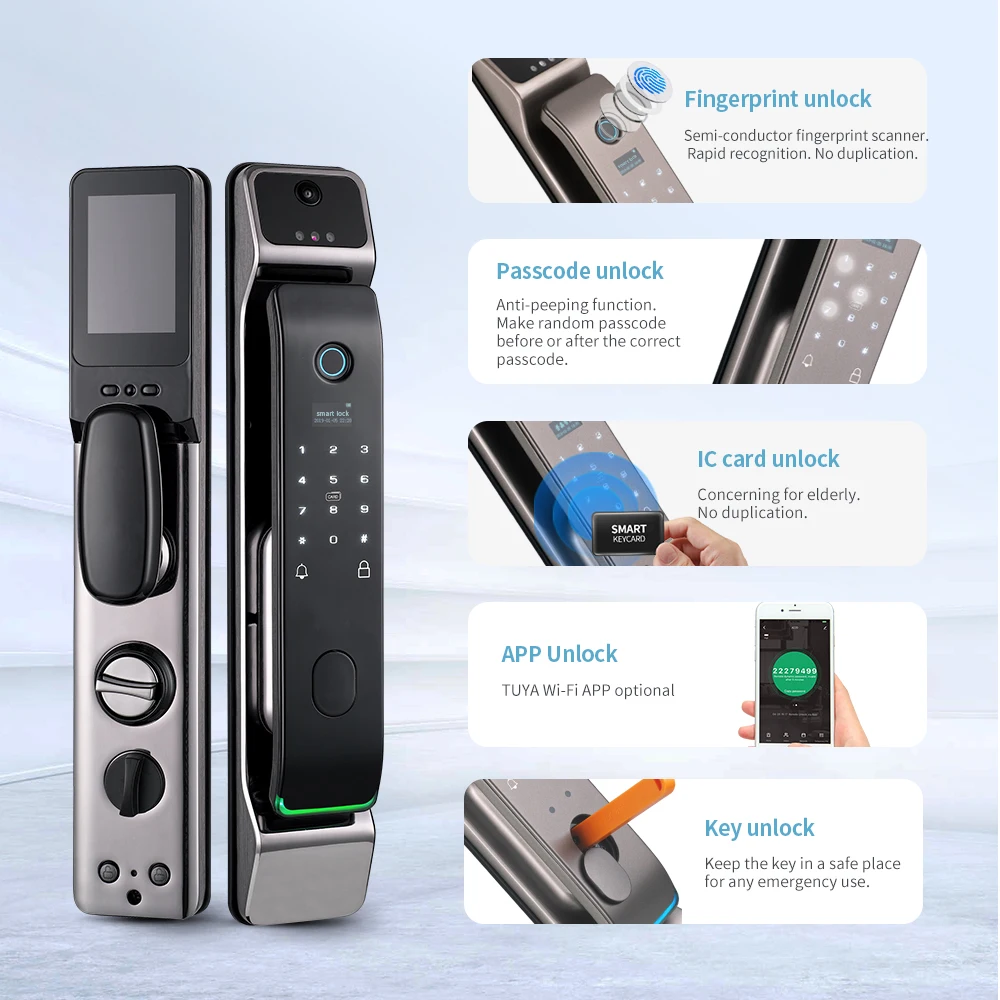 fingerprint+passw+card+key+tuya wifi optional+face recognition