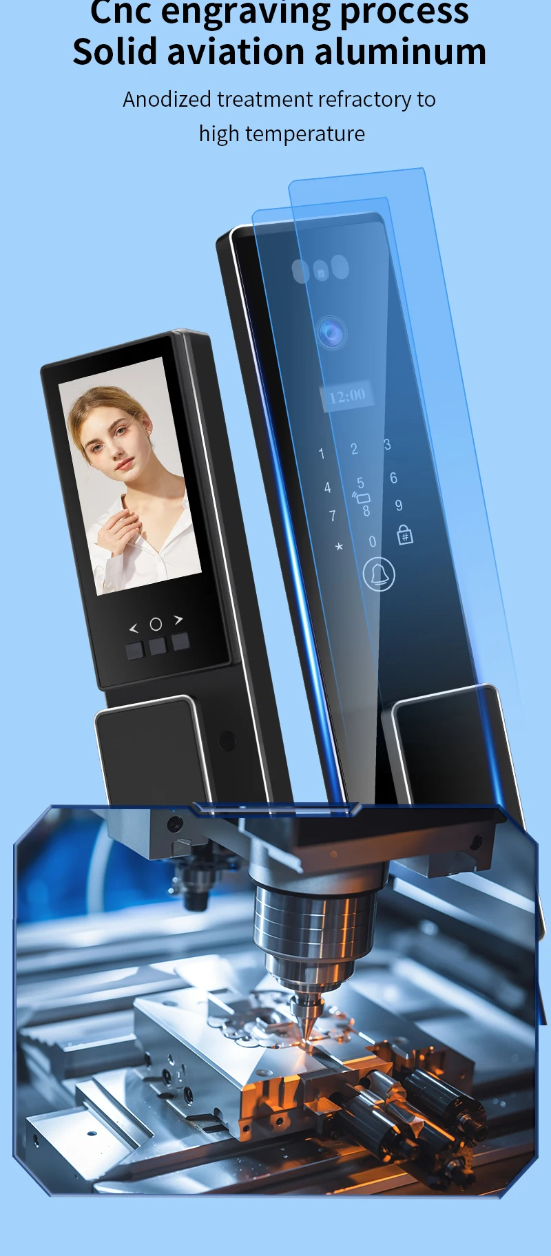 New Design 3D Face ID Digital Doorlock CNC Process Tuya Video Calling Password Card Fingerprint Smart Door Lock