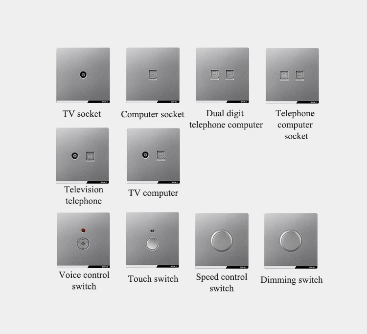 Uk Africa Standard Electrical Switch Socket 1/2/3 Gang Grey Wall Switch Dimmer Computer Tv Doorbell Switch With Usb Socket